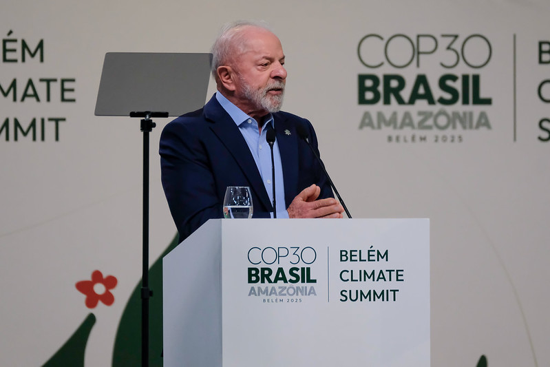 Luiz Inácio Lula da Silva, President of Brazil, speaking during the Opening Plenary of the Belém Climate Summit. (Photo: UN Climate Change/Diego Herculano)