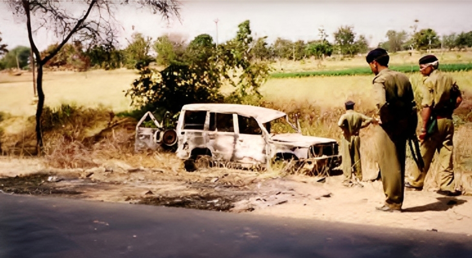 The Dawoods burnt jeep inspected by the Gujarat Police weeks after the incident. (Credit Dawood family archive)