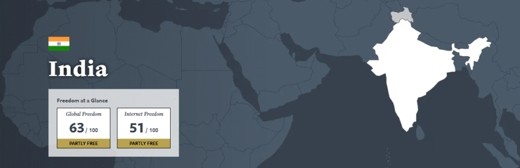 A memory of freedom (pre-2014): Before the current trajectory took hold, India was celebrated as a beacon of democracy. In 2013, just before the Modi government’s first term, Freedom House classified the country as “Free,” awarding it a robust score of 77/100 with high marks for civil liberties. India ranked 27th on the EIU Democracy Index (score 7.92) and held a solid 0.567 on the V-Dem Liberal Democracy Index.