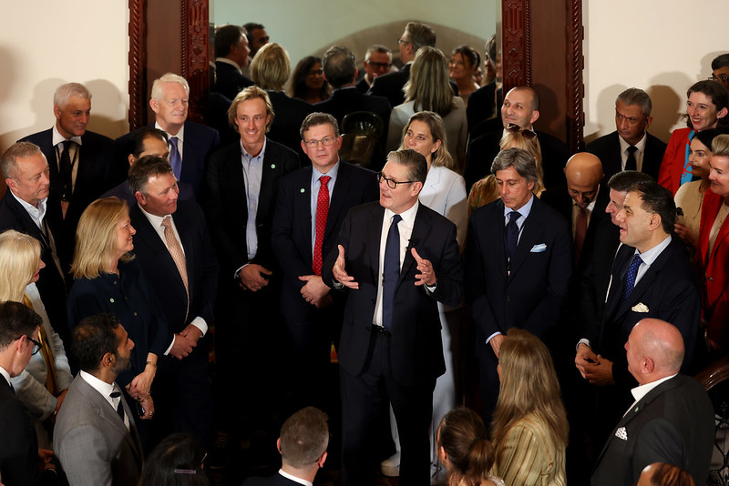 Photo: Prime Minister Keir Starmer meets UK and Indian businesses: 08/10/2025. Mumbai, India. Prime Minister Keir Starmer meets leading UK and Indian businesses figures at the Taj Mahal hotel. (Credit: Simon Dawson/No 10 Downing St)