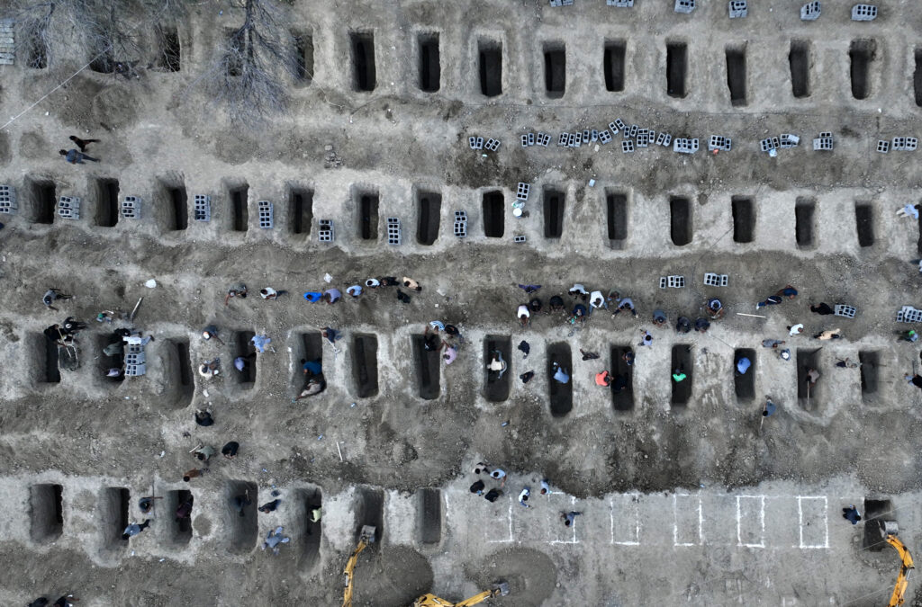 Feature photos: In Minab, Iran, grief follows the February 28 US airstrikes on a girls’ primary school. By March 3, graves were dug for the students killed. During the burial, a mother carries a photo of her two daughters, both lost in the attack. The school was hit twice, 40 minutes apart—the second strike maximising casualties among rescuers and bystanders. In all, 160 schoolgirls and teachers were killed. (Credit: Stringer/AA)