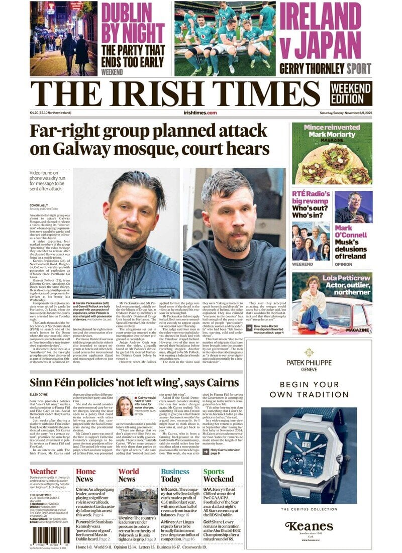 A document described as a “manifesto” outlining the group’s extremist ideology was also recovered during the searches. In the video, the masked men claimed responsibility for what they described as an attack on the Galway mosque and threatened further violence, calling their campaign “an eye for an eye.” They accused the Irish government of allowing what they portrayed as a “hostile takeover” by migrants.